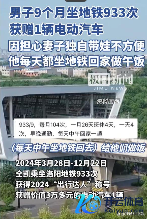 最近,一则对于洛阳地铁的新闻引起了庸碌热情:别称须眉在9个月内坐了933次地铁,最终取得了价值3万元的电动汽车。这一看似温馨的“奖励”事件,飞速在酬酢媒体上炸开了锅。