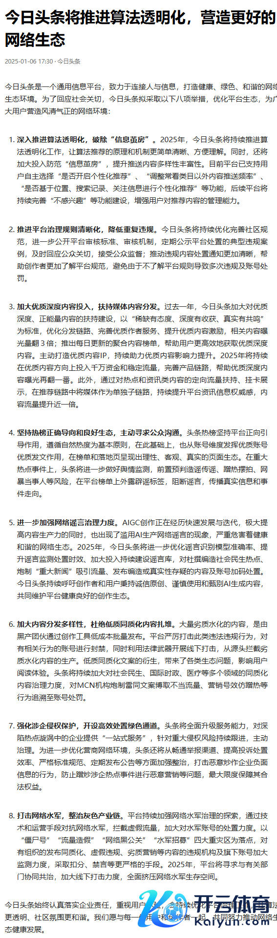 本日头条拟选择八项举措优化平台生态:鼓舞算法透明化,营造更好的汇聚生态本日头条拟选择八项举措优化平台生态:鼓舞算法透明化,营造更好的汇聚生态