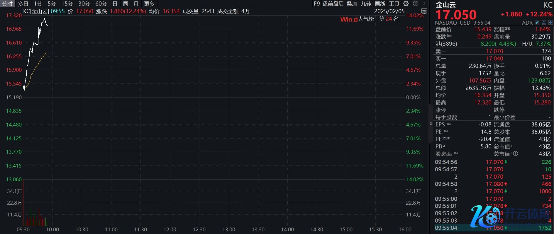 22:55 金山云大幅拉升,现涨超12%。